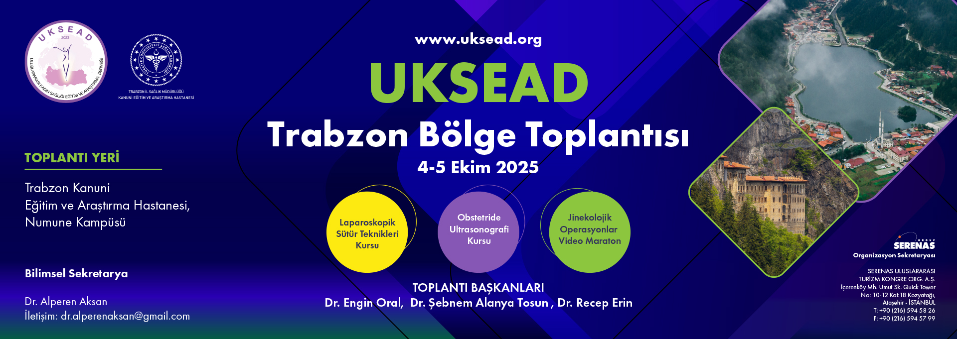 UKSEAD Trabzon Bölge Toplantısı Trabzon SBÜ Kanuni Eğitim ve Araştırma Hastanesi, Numune Kampüsü'nde 4-5 Ekim 2025 tarihlerinde yapılacaktır.